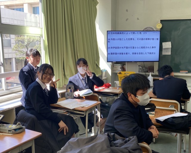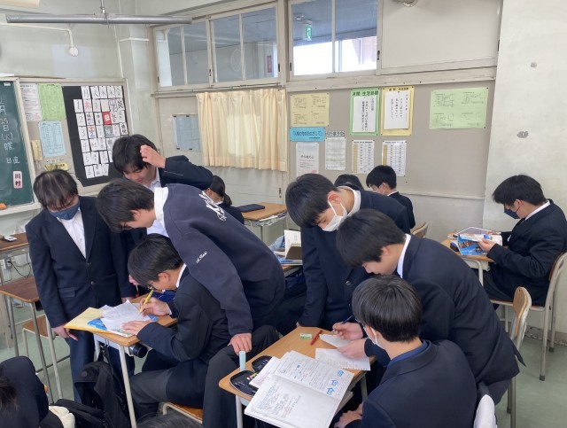 ということで、試験範囲について先生から出題された問題に、友達と相談しながら答えるという活動をしているようです。