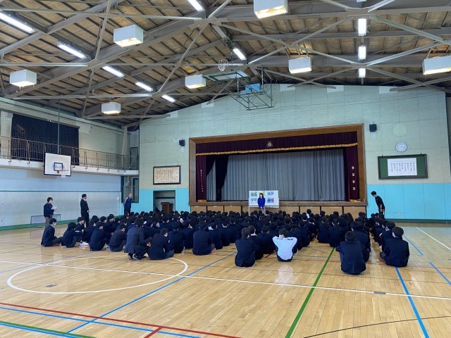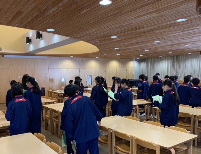 1時間目は学年ごとに自己紹介や身体測定、学年集会をしています。合間に友達と話したりしながら、楽しそうな雰囲気です。