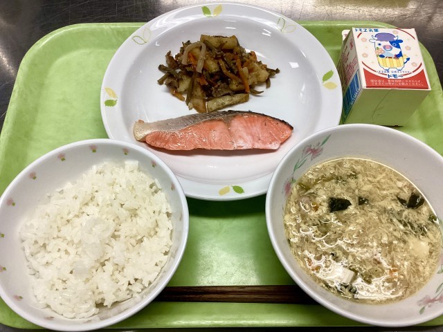 もうすでにこのメニューに慣れ親しんでいる2・3年生は、早くもいろんなクラスで「おかわりジャンケン」を行っていました。「鮭の塩焼きの争奪戦かな?」と思って見ていましたが、もしかしたら「じゃが芋の金平炒め」だったかも?そう思うくらい、この2つの残菜はとても少なかったです!