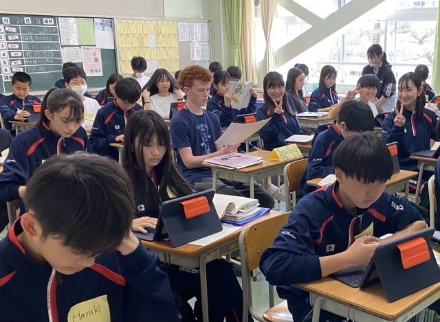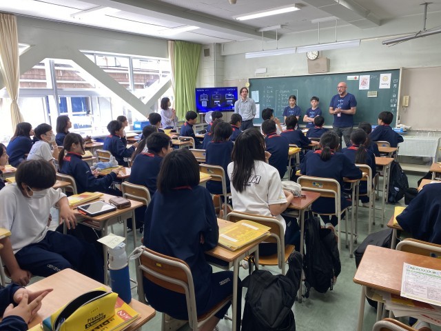 国語、社会科、英語などの授業に、マウントテイバー校からのゲストが参加しています。