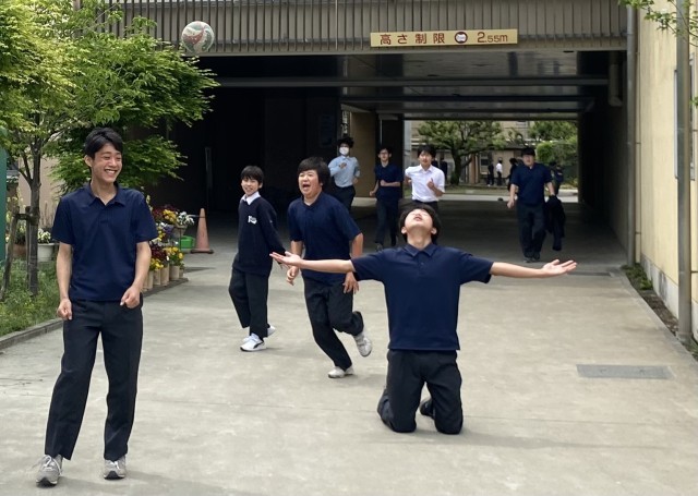 暑くもなく、寒くもない、外遊びにちょうど良い恵まれたシーズン。感謝のあまり天を仰ぐ生徒も。