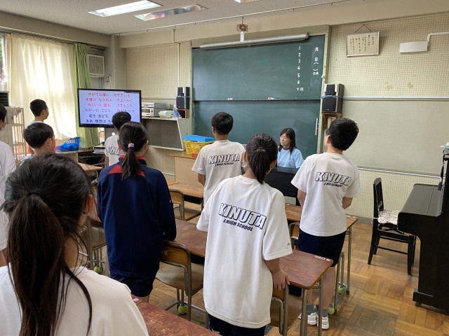みんなで校歌の練習をしたあと、一年生だけで歌ってみました。かなり覚えられている様子。