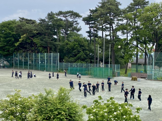 3年生が修学旅行中の砧中学校、留守番最終日です。いつものように校庭は賑わっております。