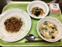 今日のご飯は有機米を使っています。農薬・化学肥料一切なしで育て、さらにそれらを数年使用していない農地・農業機器で徹底した管理のもと作られたお米です。自然の恵みをたっぷり受けて育ったお米は、当然味も違ってきます。意識して味わってみて、自分がどんな感想をもつか、それぞれ考えてもらえると、食への興味や関心を高めることにつながると思います。