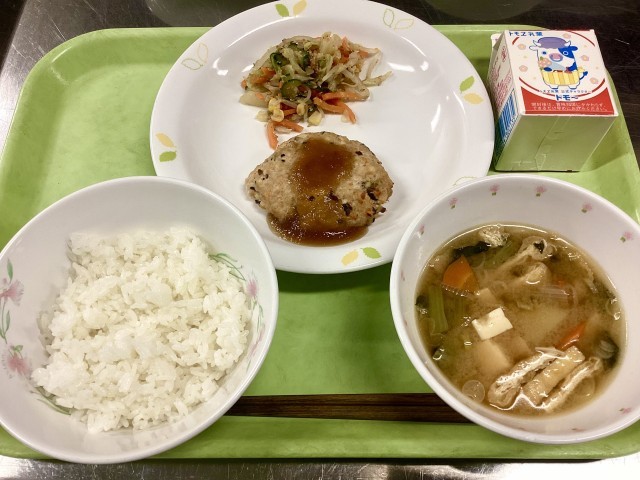 今日はハンバーグです!給食のハンバーグは栄養バランスを少しでも高めるために、いろんな食材を使っています。「どんな食材を」「どのくらいの量使うか」、これによってハンバーグとしての美味しさと食感をも左右します。