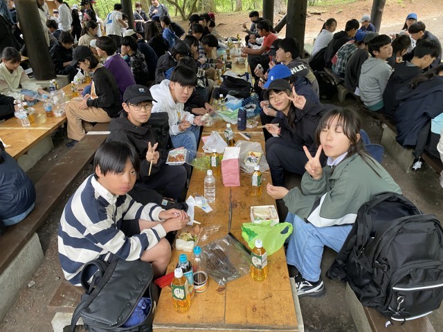 たくさん歩いたので皆さんお腹が空いているようです。待望の昼ごはん。いただきます!
