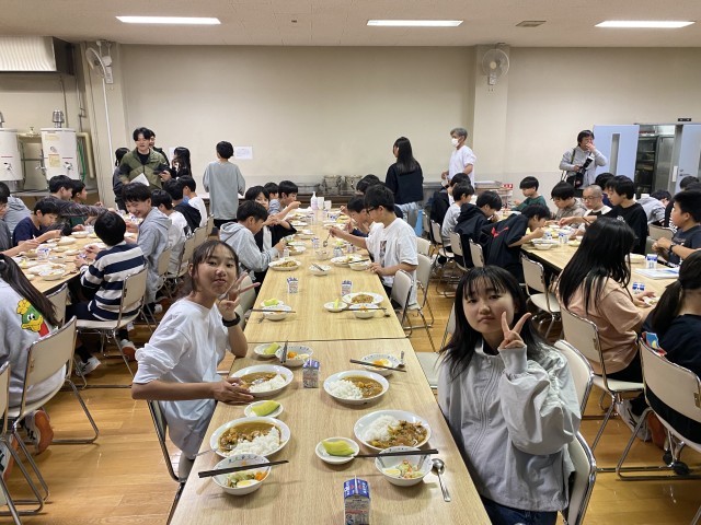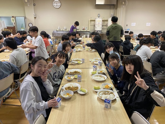 食堂に入ってくるなり「いいにお〜い!」との声。そう、林間学校と言えばカレーライス。