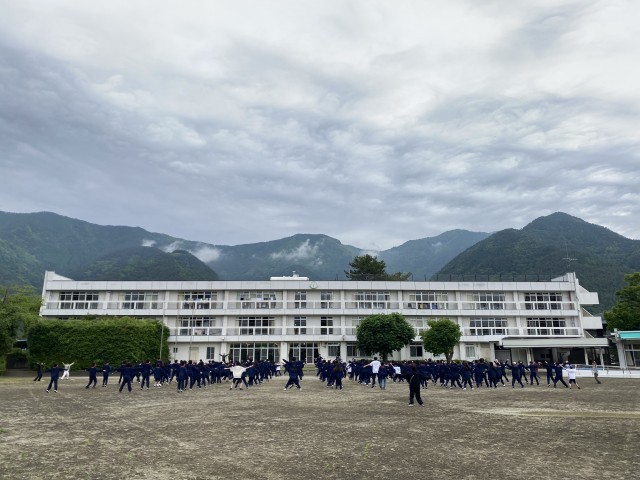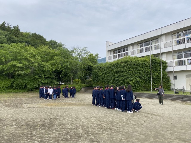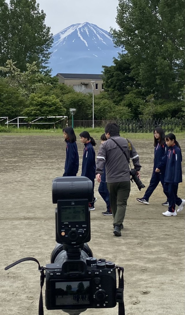 後日目にするクラス写真では、生徒にピントを合わせているので、きっと富士山はあまり見えていないかも。でも実際には、かなりクッキリと山肌が見えています。