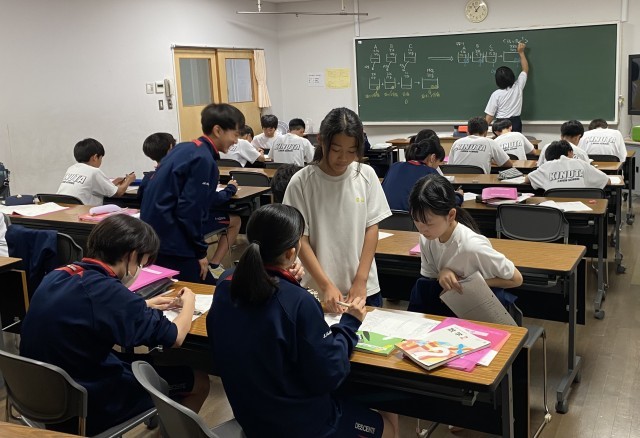 少人数に分かれての授業です。教え合いなどの時間にも積極的に取り組んでいます。