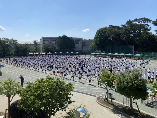校庭いっぱいに広がってのラジオ体操は、なかなか壮観です!