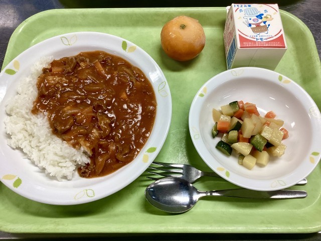 今日は運動会でした。この給食の紹介文を書いている時は、午前中の競技が無事に終わってみんな給食を食べて、そして今まさに給食時間が終わった瞬間です。運動会の日でもみんなが安心して安全な給食を食べられるように、食べる時間が遅くなっても対応できるよう動いていました。しかし、そんな心配はいらなかったようで、むしろ生徒たちは予定よりも早く午前中の競技を全て終えて、余裕をもって教室へ戻って来ていました。おかげで、ゆったりと給食時間を過ごすことができたようで、何よりです!予定よりも早く終わったのは、これまで練習をがんばってきた成果ではないでしょうか?