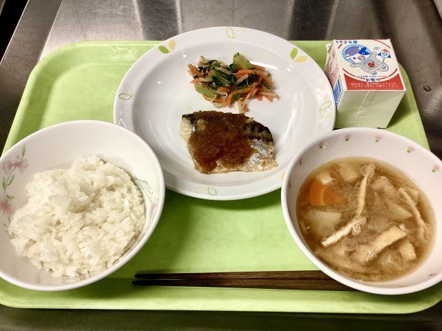 いよいよ来週は期末考査!今日は週末にかけてテスト勉強がはかどるよう、DHAたっぷりの「さばのみぞれがけ」を作りました!魚には、脳の働きを活性化させると言われているDHA・IPA(別名EPA)がたっぷり!これらの成分は魚油に含まれているので、油が多くてジューシーで、さらに食べやすい「サバ」が学生に1番向いていると思います。サバには大きい骨がたびたび含まれているので、給食では「骨抜き」を注文しています。安心して、ご飯のおかずとして味わって食べてください!
