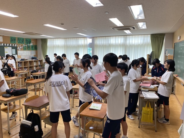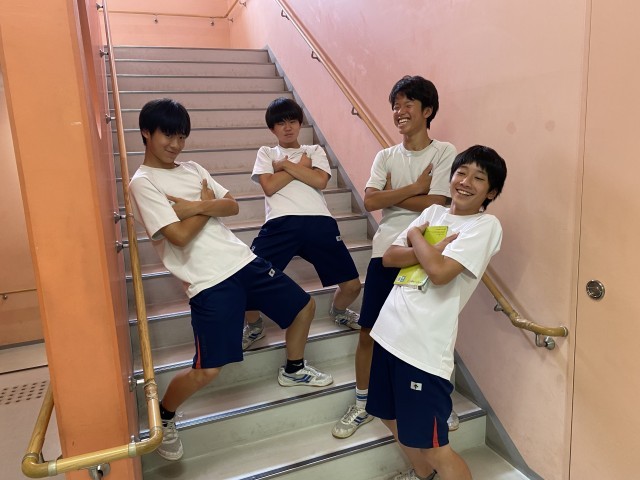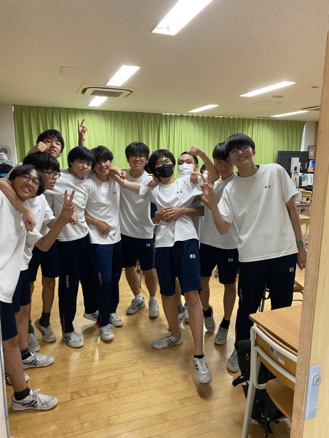 試験が終わった3年生のフロア。どんな様子かな?と思い見に行くと、それぞれどんな解答をしたか、真面目に情報交換中でした。しかしカメラを向けるとポーズを取ってくれるサービス精神😊