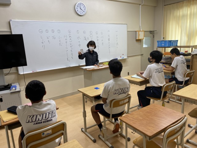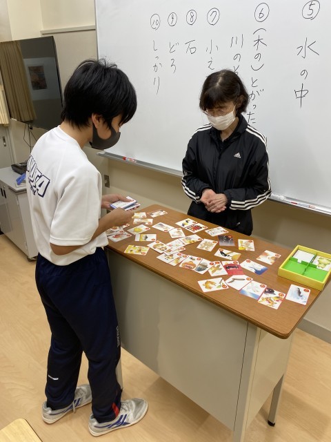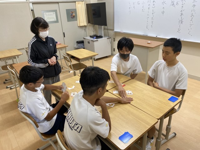 テスト後の解説に取り組んだ後、カルタを使ってことわざを学んでいます。皆さん取るスピードが速い!