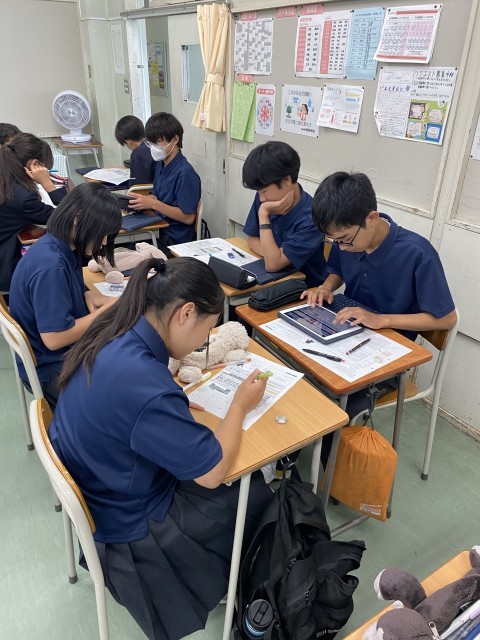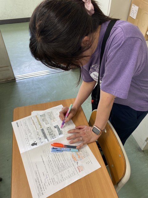 表示から商品を当てるワークシートが面白く、盛り上がっています。見学の先生も熱心に考えています。