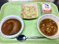 【 メ ニ ュ ー 】・カレーミートドッグ・オニオンドレッシングサラダ・冬野菜の...