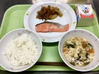 【 メ ニ ュ ー 】・ご飯・鮭の塩焼き・じゃが芋の金平炒め・かき玉汁【 産 地...