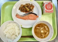 【 メ ニ ュ ー 】・ご飯・鮭の塩焼き・じゃが芋の金平炒め・鶏ごぼう汁【 産 ...