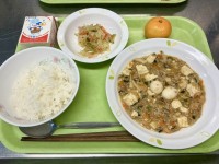 【 メ ニ ュ ー 】・ご飯・キャベツの中華サラダ・豆腐とえびのうま煮・みかん【...