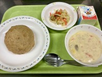 【 メ ニ ュ ー 】・チャーハン・いかチリソース・わかめスープ【 産 地 】米...