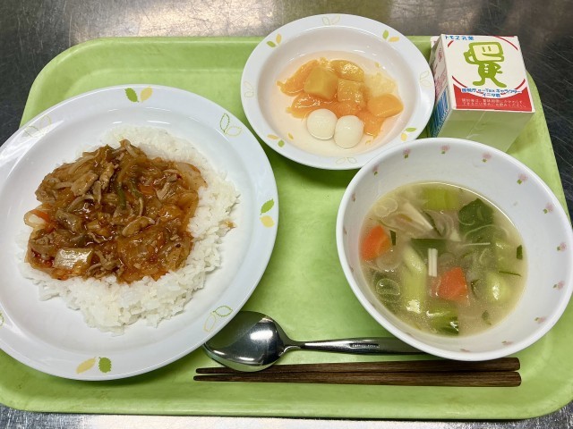 【 メ ニ ュ ー 】・豚キムチ丼・サムゲタン風スープ・白玉フルーツポンチ【 産...