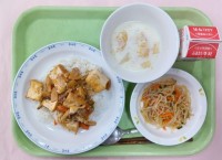 生揚げの家常豆腐丼は、麦入りご飯に生揚げ、野菜を味噌味で炒めた具材をかけていただきます。味噌味で美味しくご飯がいただけます。春雨サラダは、春雨と下茹でした野菜をごま油の効いた酢醤油で和えています。フル...
