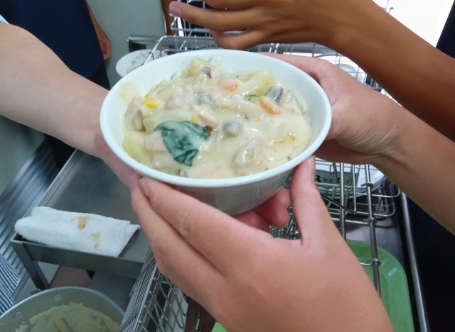 の後は、減らしたい人、増やしたい人が配膳台に集まります。