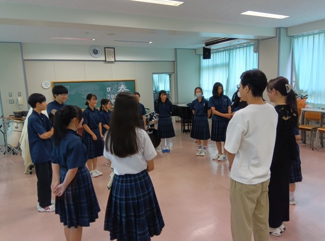 指導に来てくださっているコーチの先生のお話をミーティングで真剣に聞いていました。