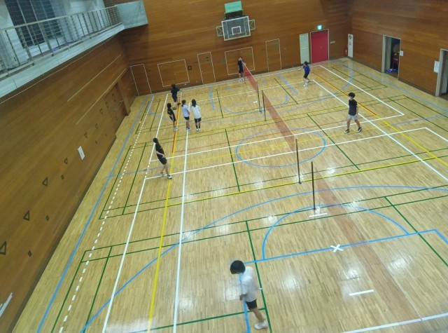 写真は午後に行われていたバドミントン部と将棋・オセロ部の活動の様子です。