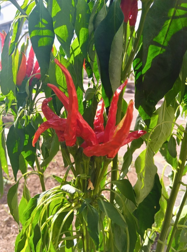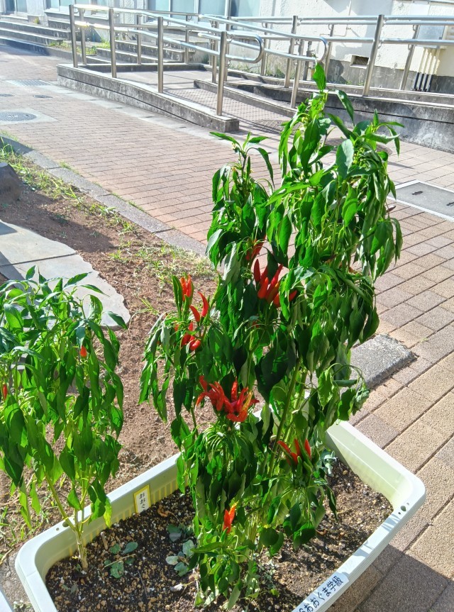 夏休み前にはまだ緑色だった唐辛子が、真っ赤になりました!