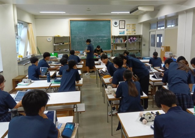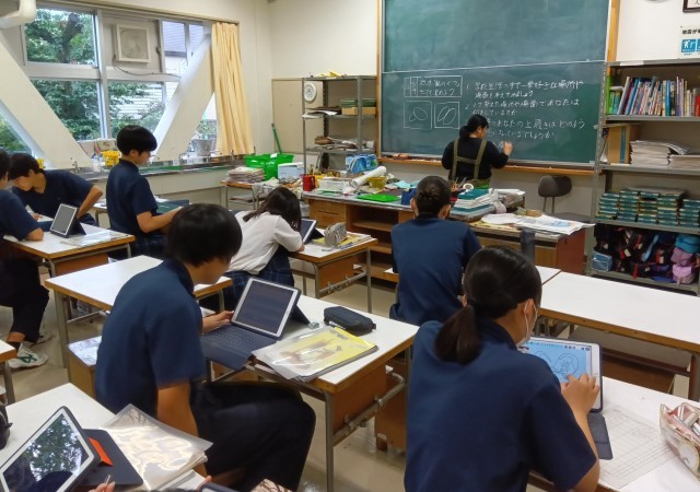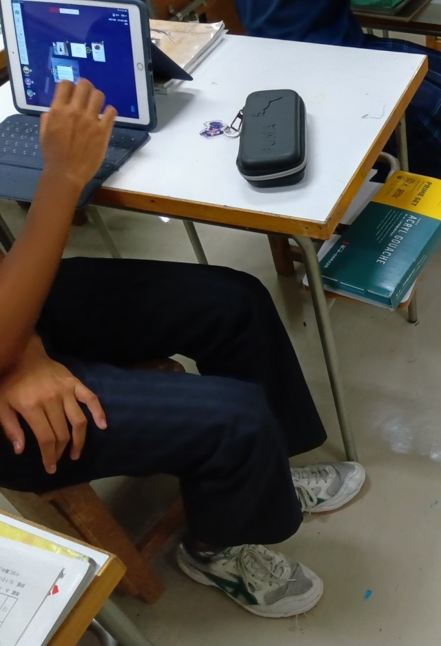 学校生活の好きな場所や場面を想像し、その時の上履きの絵を描きます。(副校長)