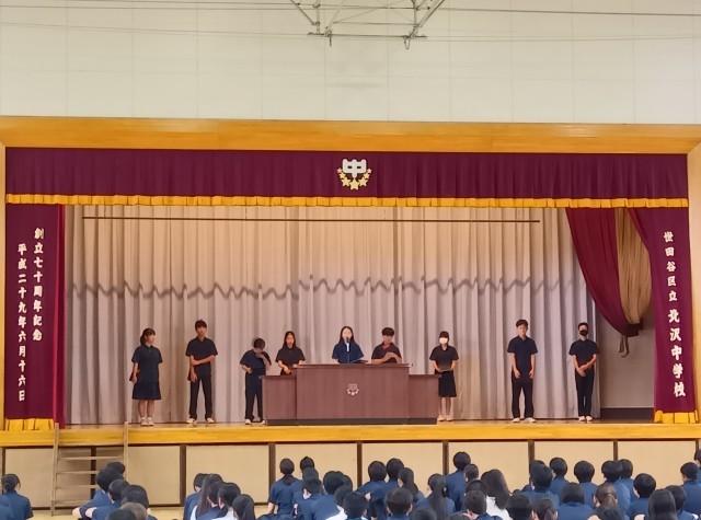 生徒会長からの生徒の皆さんの協力に対する感謝のことば、それに引き続く委員の皆さんの感謝のことば、後期への期待のことばが印象的でした。(副校長)