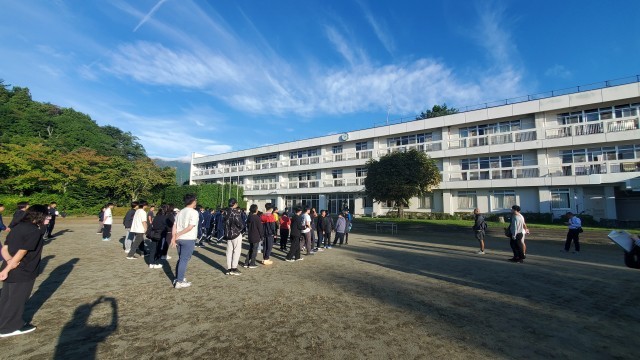 6時に起床し、洗面、布団あげ等を行い、園庭で朝礼です。