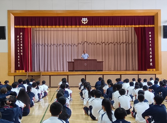 全校朝会が始まりました。