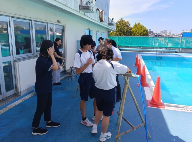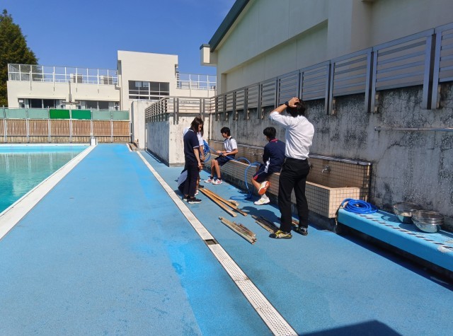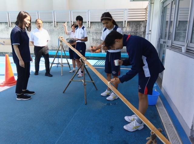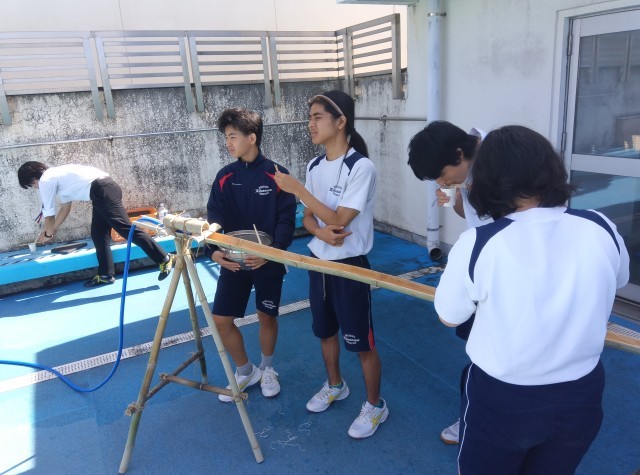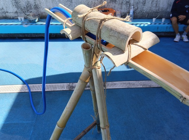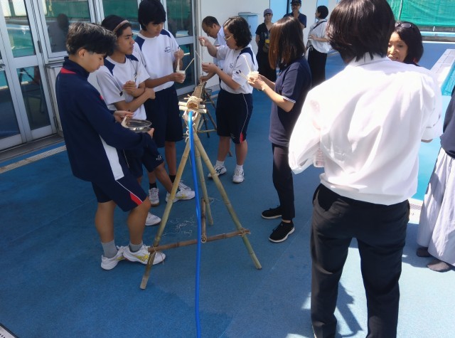 竹は夏休み中に教員の田舎からいただいたものです。おじいさんの知恵をいただき作成しました。ありがとうございます。