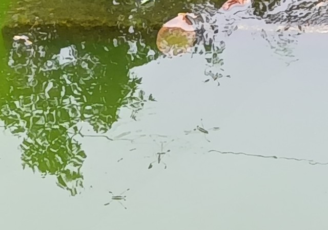 写真は池の様子です。気温が下がり亀さんが姿を見せなくなりました。水面にはアメンボがたくさんいます。(副校長)