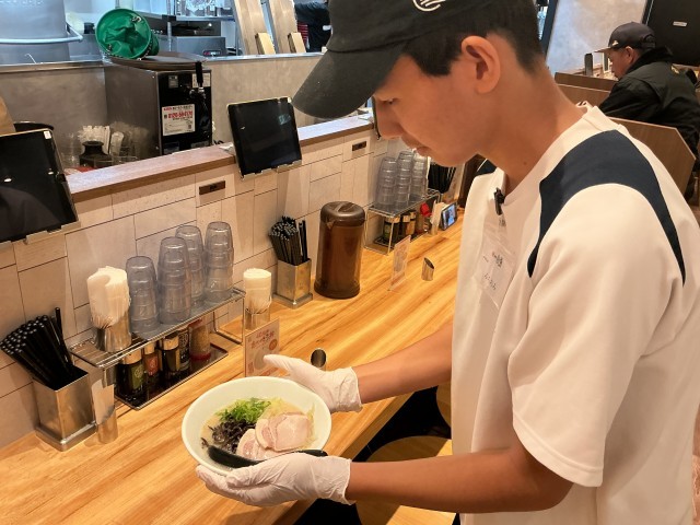 こちらは、一風堂 明大前店の様子です。調理スタッフ、ホールスタッフとして初日から忙しそうに働いていました。ちょうどお昼時でしたので、おすすめのラーメンをいただきました。とてもおいしかったです。明日も頑張ってくださいね。