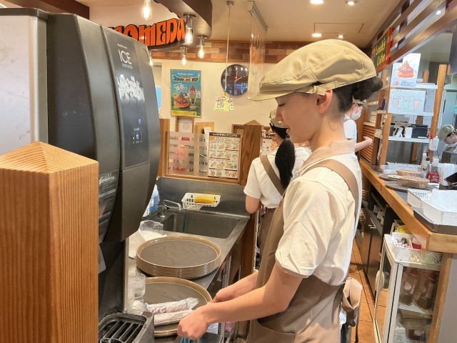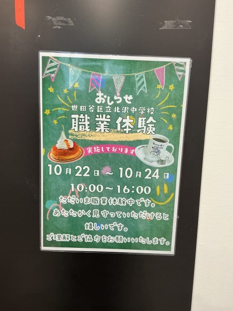 レジやテーブルの整備などを教わってやっています。丁寧な掲示も作っていただきました!