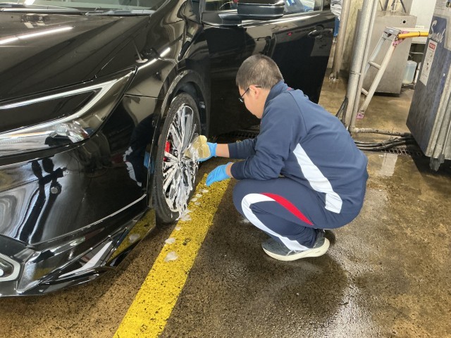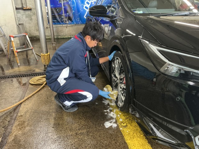 こちらはエネオスです。車が洗車スペースに入ると、手際良く準備をし、洗車をしていました。2日間の体験を生かし堂々と仕事をしています。