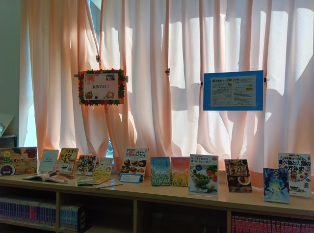 写真は、図書館の特設コーナーです。学校図書館で職場体験した生徒が作ったものです。勉強の合間に写真や絵が多めな本を眺めて気分をリフレッシュするのもおすすめです。(副校長)