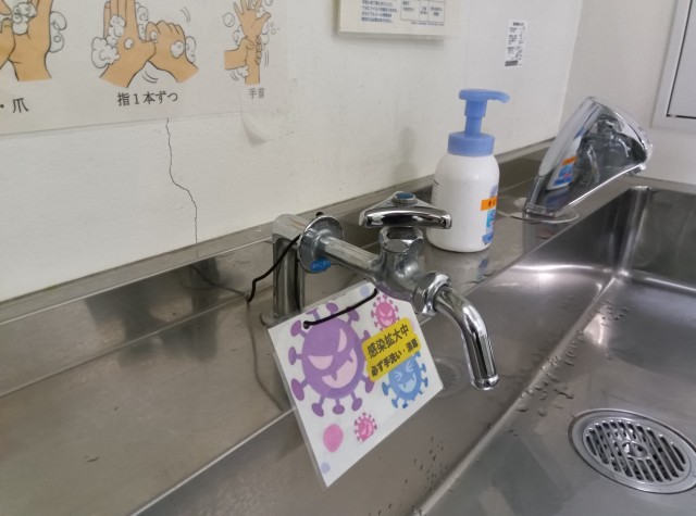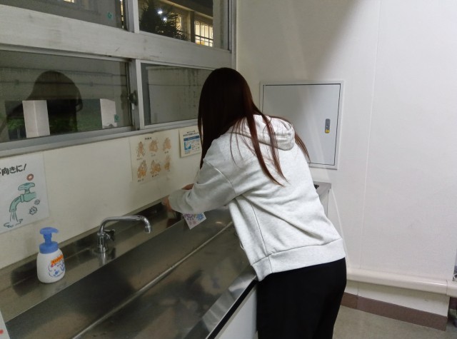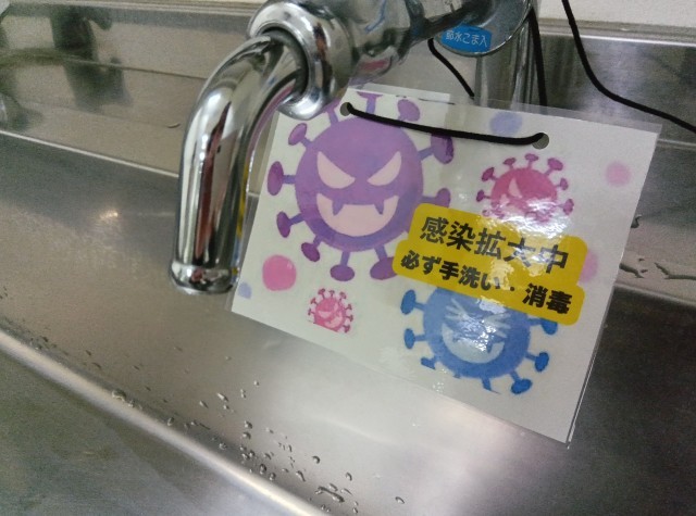 さて、今週は登校後に急に発熱し、早退する生徒が何人か見られました。高熱の場合は、保護者のお迎えをお願いする場合もあります。インフルエンザの場合は、欠席になりませんので、朝いつもと体調が違うと感じたときは体温を測ったり少し様子をみたりしていただくとよいと思います。感染症対策の基本は、手洗い、消毒です。手についているかもしれない菌を、丁寧な手洗いと消毒で体に入れないことが大切です。昨日、生徒の下校後に養護教諭が水道に手洗いを呼びかける表示をしました。一人ひとりの心がけでインフルエンザの流行を阻止したいと思います。