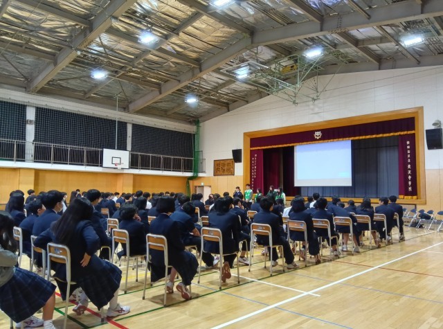 生徒と年の近い大学生のお話に、生徒の皆さんも共感していました。(副校長)