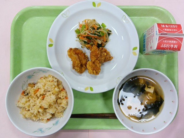 鶏肉の唐揚げは、醤油味です。カラッと揚がっておいしいです。