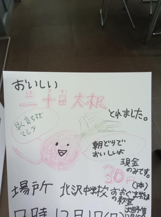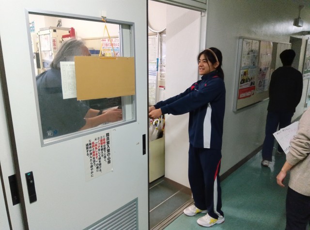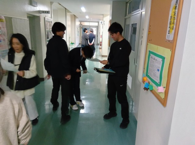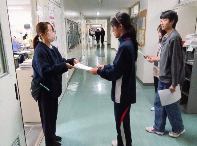おおぐま学級の生徒が教職員にチラシを配布していました。
