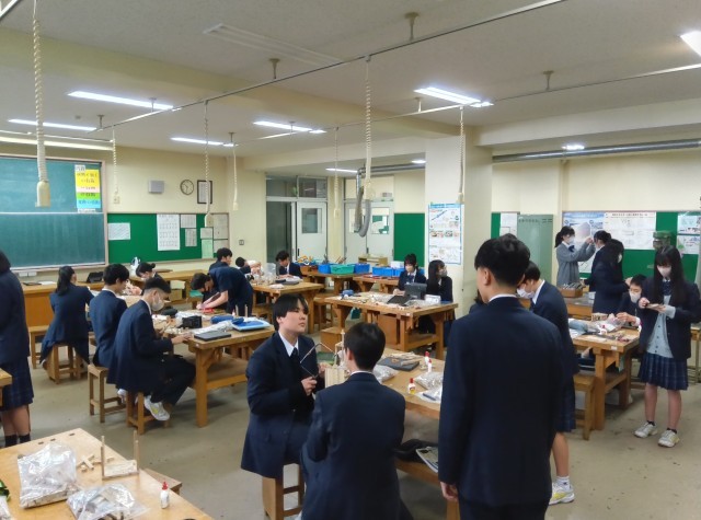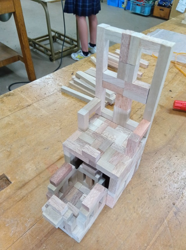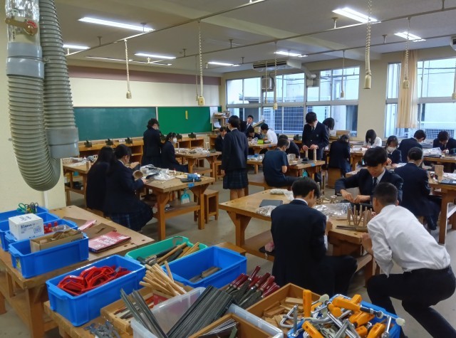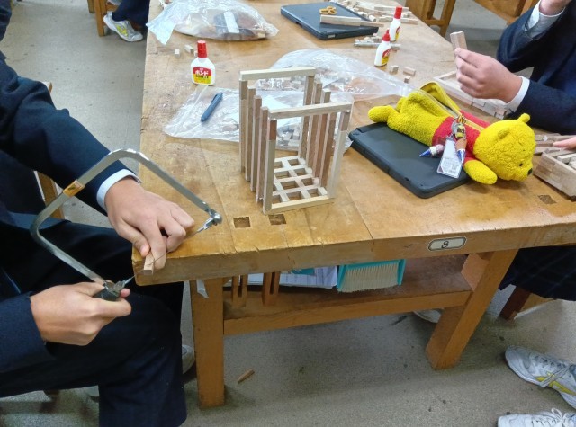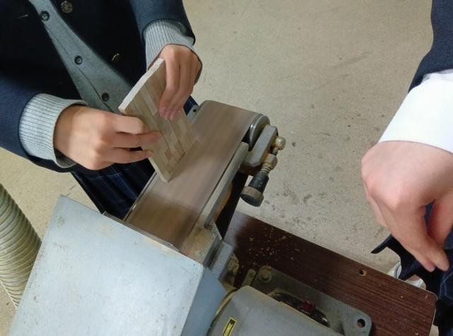 糸ノコ、ベルトサンダー、ヤスリなども使って加工しています。(副校長)