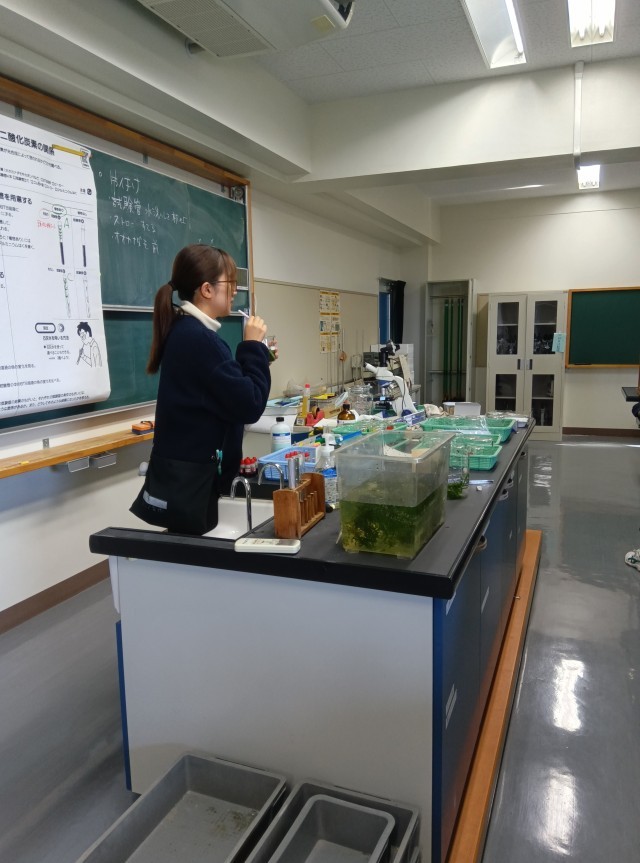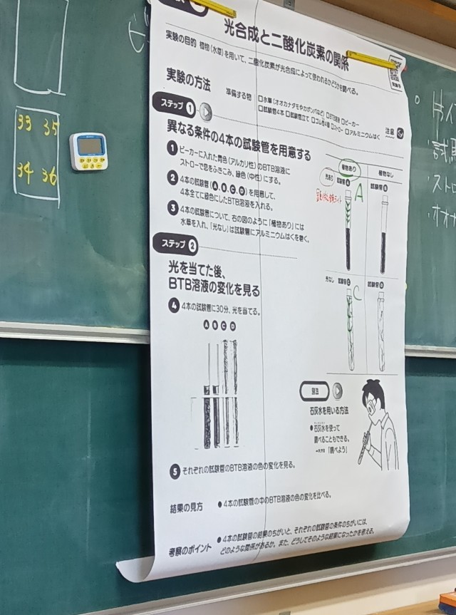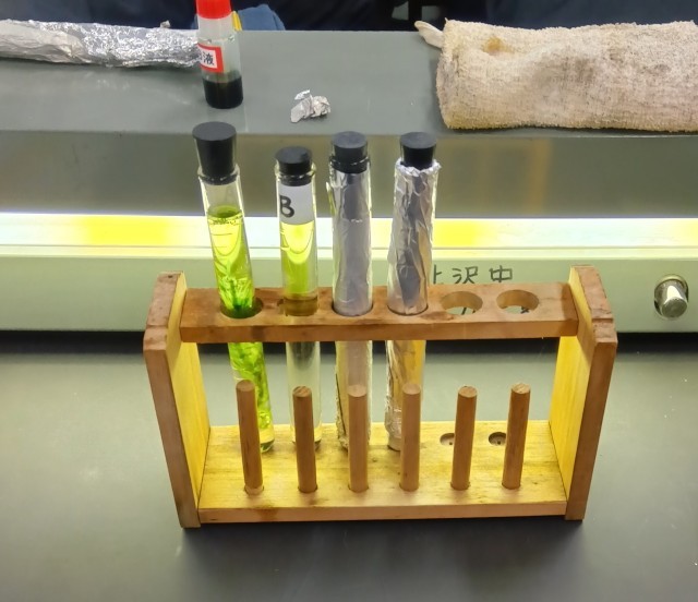 光合成と二酸化炭素の関係を調べるために光に当てています。