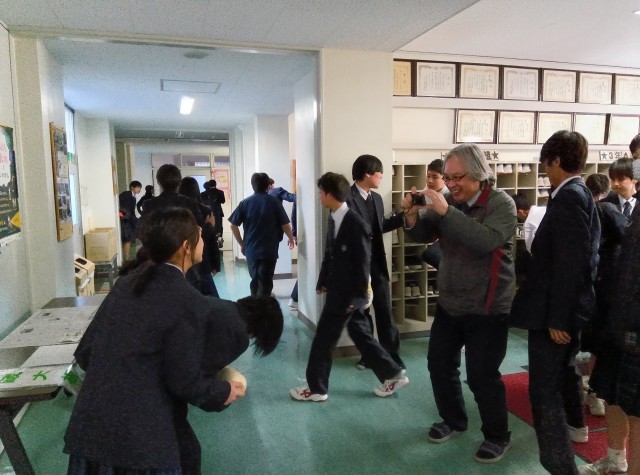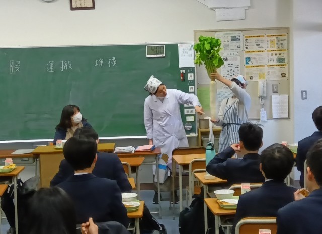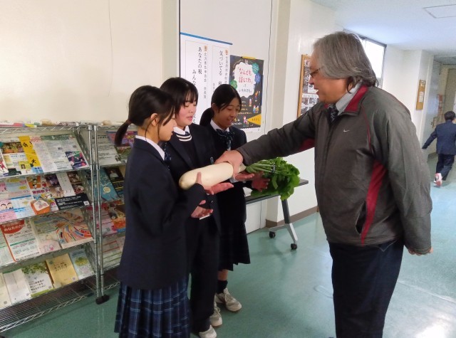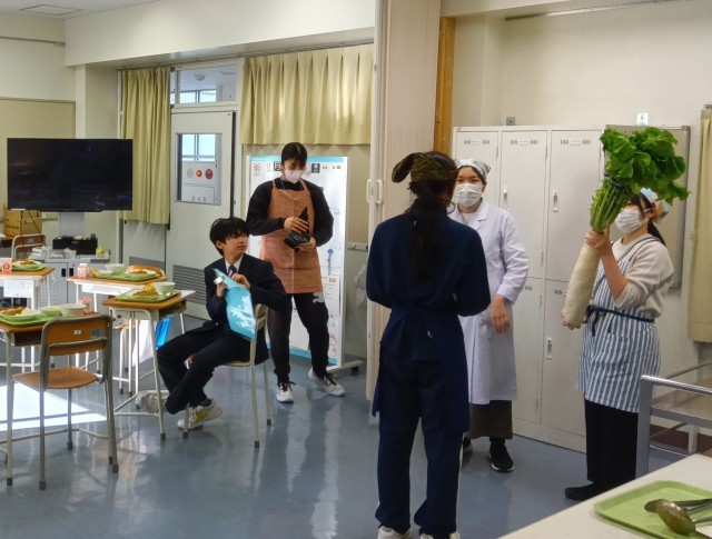栄養士が今日の給食に使われた大蔵大根の見本を紹介しました。