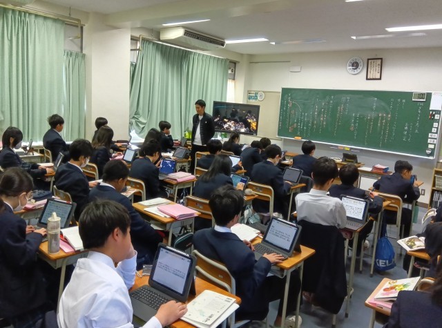 教員の問いかけにロイロノートで回答しています。