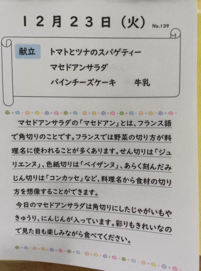 今日も調理員さん、ごちそうさまでした。(副校長)