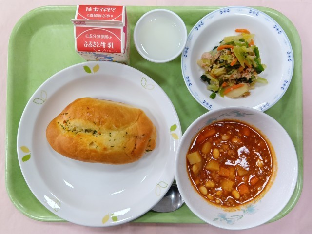 今日はパン食、人気のガーリックトーストです。